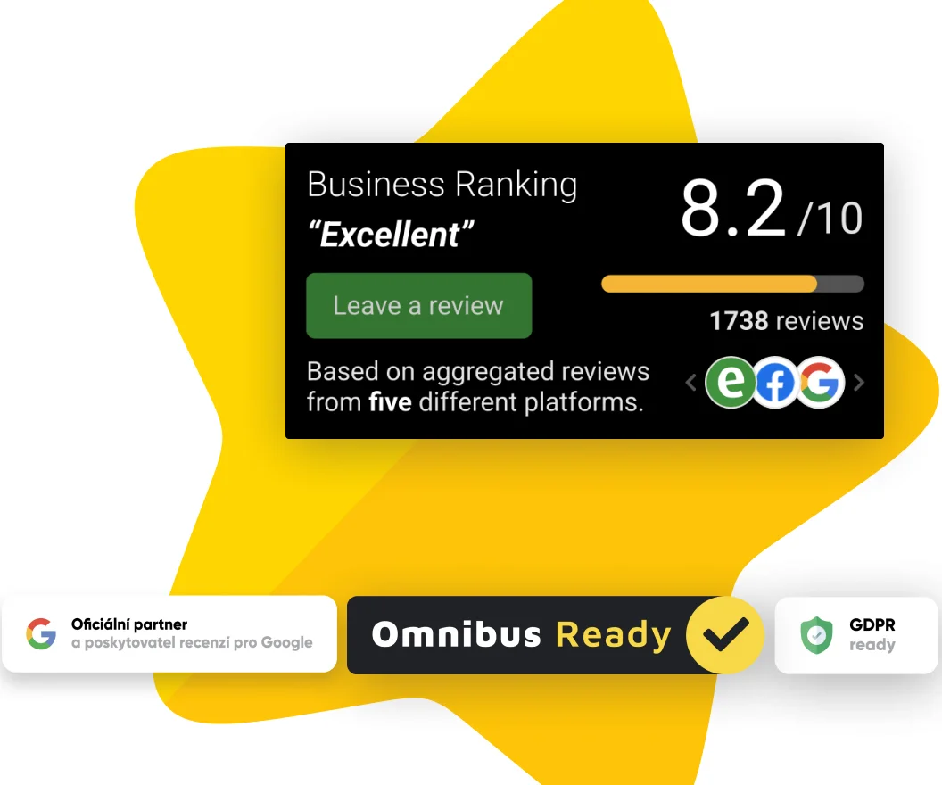 S příchodem omnibusové směrnice vyvstaly otázky, jak to ovlivní marketing recenze. Abychom rozptýlili jakékoli pochybnosti, uvádíme fakta, která vás přesvědčí, že Spolehliverecenze.cz je plně v souladu se směrnicí Omnibus a že názory vašich zákazníků jsou získávány v plném souladu s platnými zákony.
